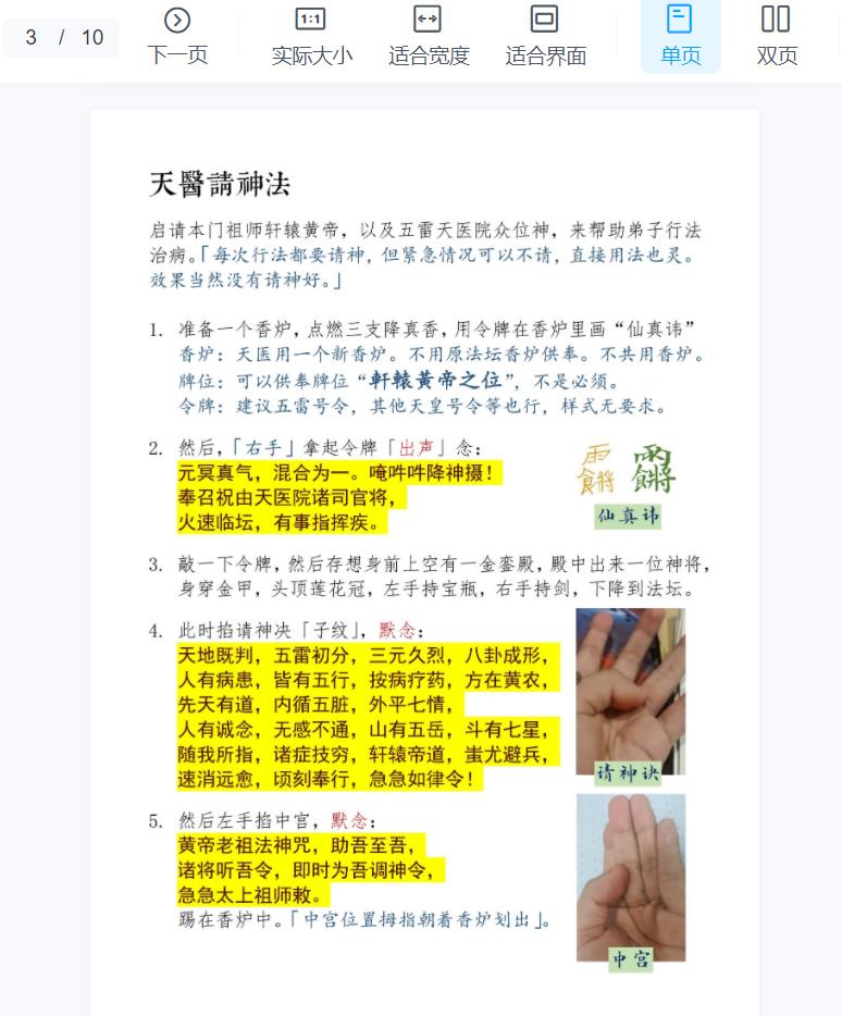 1.祝由请神法(启请本门祖师轩辕黄帝以及五雷天医院众位神,来帮助弟子行法治病)