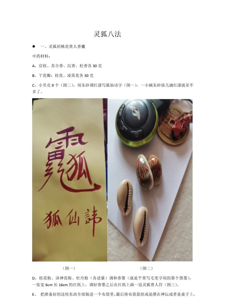 二:灵狐招财香牌制作秘法