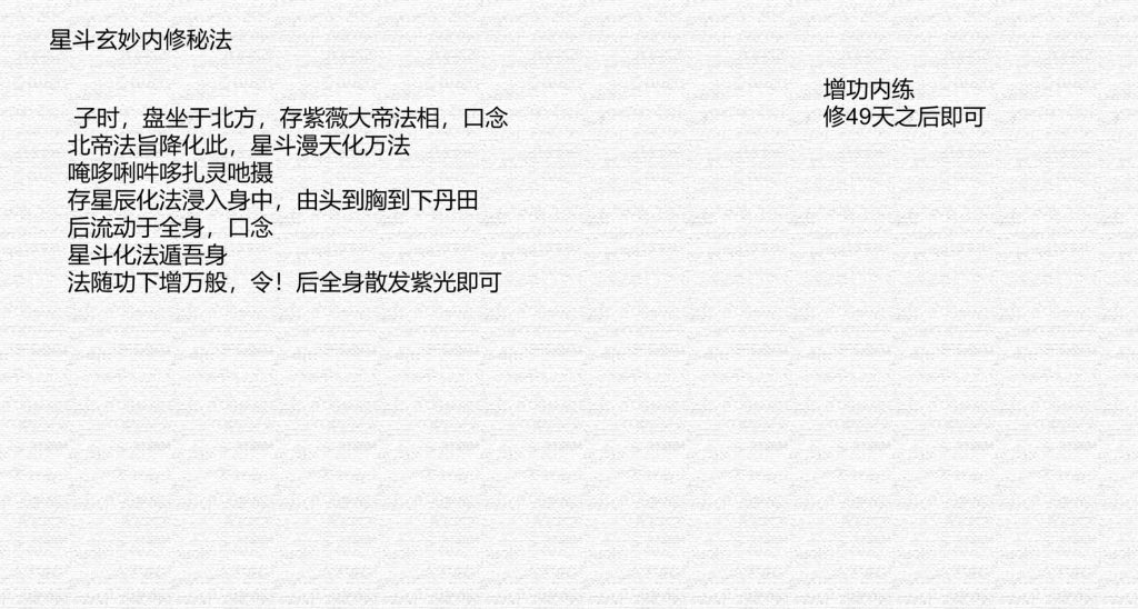 星斗玄妙内修秘法(此法为本门内练,修持此法可增自身功力)