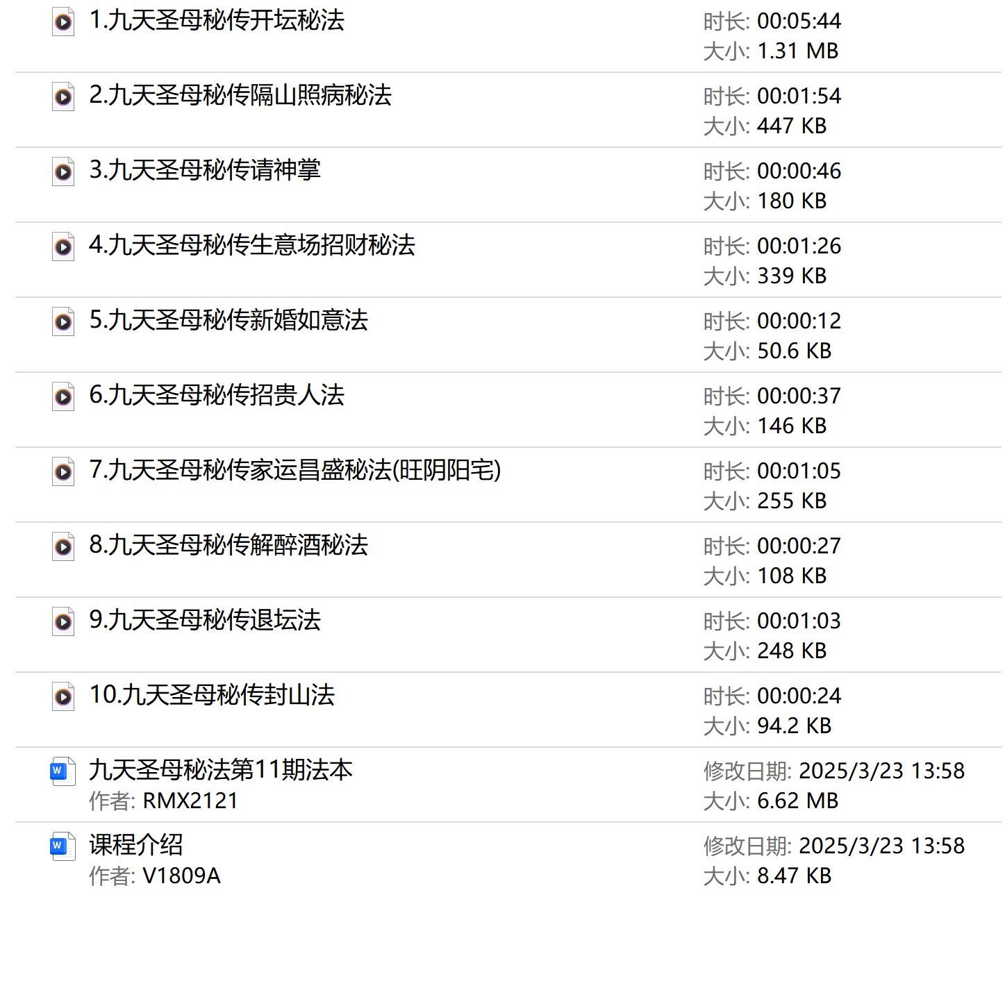 九天圣母秘法第十一期到二十期介绍略。。。。。